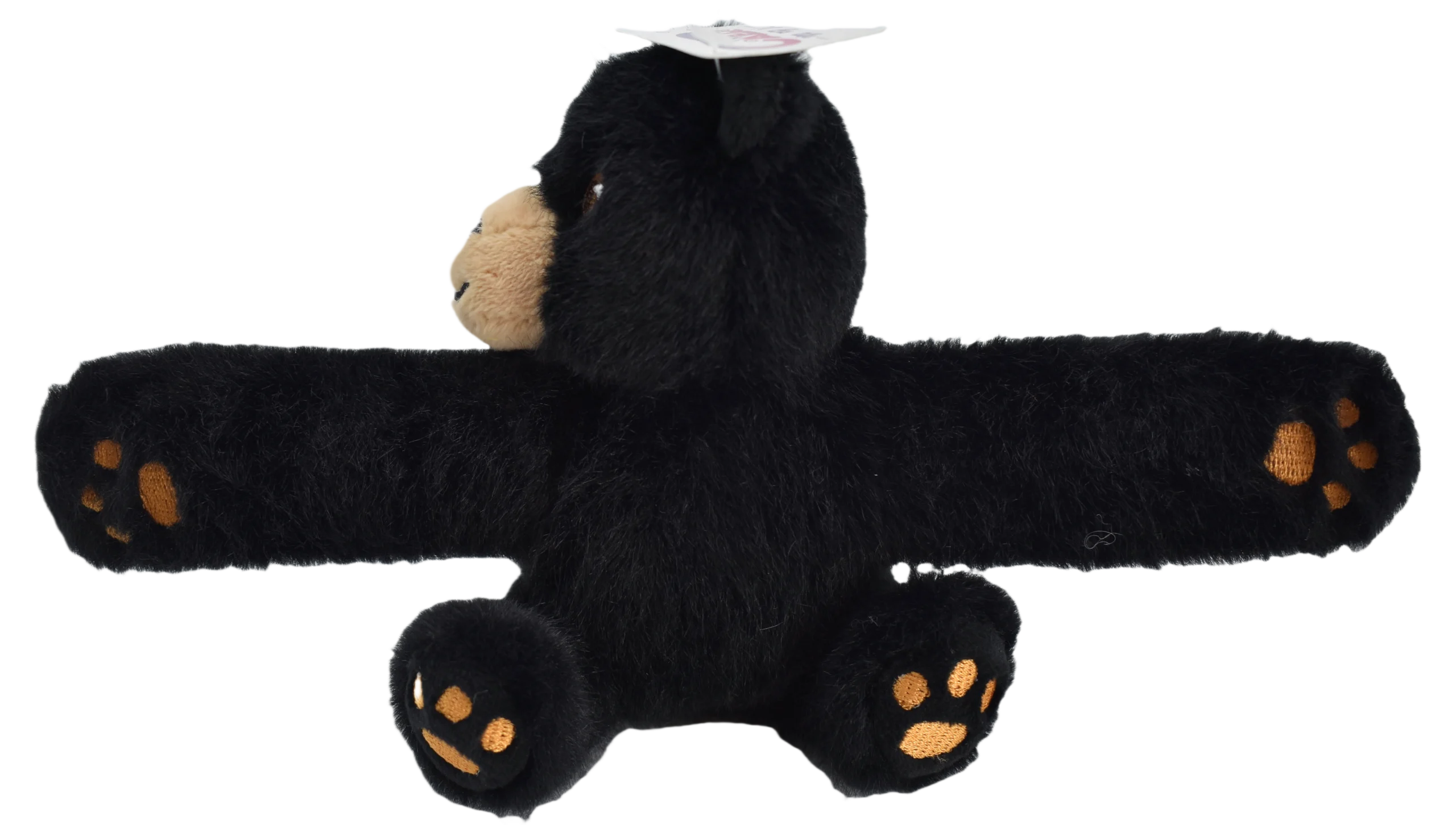 This is a black bear slap bracelet toy. It combines the design of a black bear with a slap bracelet. The black bear part is made of soft plush material, with details such as the black bear’s thick fur, round ears, and cute facial expression, which look vivid and cute. When you slap it on your wrist, it will wrap around your wrist due to the elasticity of the bracelet. It can be used as a fashionable accessory to add a touch of fun and personality to your outfit, especially for those who love black bears or forest animals.